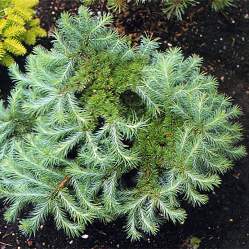 Живописная карликовая разновидность японской лиственницы. Низкое, довольно медленно растущее деревце с мягкими игольчатыми листьями, имеющими сине-зеленый цвет. Крона преимущественно сферическая, старые экземпляры имеют более сплющенный вид. Размеры: высота 0,5-1 м, ширина 0,6-1,3 м.
