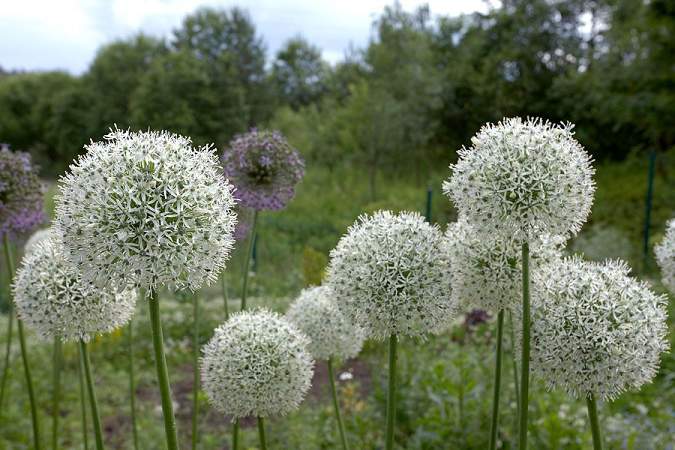 Лук Mount Everest (Маунт Эверест). Соцветие — шар из белых звездочек, крупное. Высота растения 100 см.