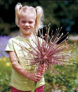 Лук Шуберта. Громадный экзотический шар-салют на короткой ножке. Цвет пурпурный. Высота растения 40 см.