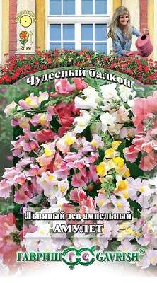 Львиный Зев ампельный Амулет 5 шт. Редкая селекционная форма львиного зева специально для подвесных кашпо и контейнеров. Имеет хороший габитус, отлично развитые побеги, равномерный рост и большое количество цветков. Побеги длиной 20 см, свисающие, листья ланцетные. Цветки разнообразной окраски — желтой, красной, розовой, белой — собраны в небольшие кистевидные соцветия. Цветет с конца июня до поздних заморозков.