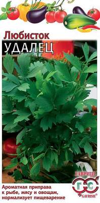 Любисток Удалец. Любисток лекарственный (Levisticum officinale)– популярное пряное и лекарственное растение. Неприхотлив к условиям выращивания, всегда хорошо зимует. Предпочитает слегка затененные участки. Посев весной в открытый грунт, всходы появляются приблизительно через месяц. Можно сеять осенью под зиму (в конце октября), тогда всходы появятся в мае. Можно сеять семена в парниках и высаживать в грунт рассаду — так поступают, когда хотят получить зелень как можно раньше. Глубина заделки семян при посеве 1-2 см. Оптимальная температура для прорастания семян 18-20 °C. В первый год растения образуют только розетку листьев, начиная со второго года все растения цветут и плодоносят. Цветет любисток в конце июня-июле, плодоносит в августе. С целью получения большого урожая листьев и корней любисток выращивают как двулетнюю культуру или как малолетнюю, обновляя посадки через 2-4 года. На одном месте любисток может расти очень долго, разрастаясь корневищами. Расстояние между растениями при посадке должно быть не менее 60 см.