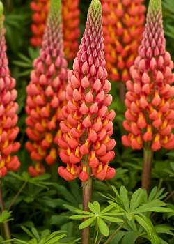 Люпин Towering Inferno (Таверинг Инферно). Двухцветный. Оранжевый с желтой губой. Цветоносы высокие. После обрезки цветет повторно до осени.