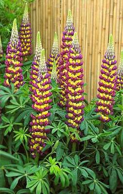 Люпин West Country Manhattan Lights (Вест Кантри Манхэттен Лайтс). Биколор. Фиолетовый с желтой губой. Очень длинные и крепкие цветоносы. После обрезки цветет повторно, до глубокой осени.