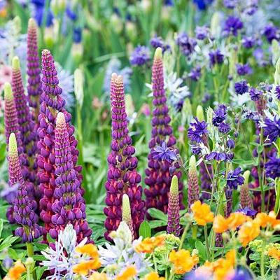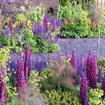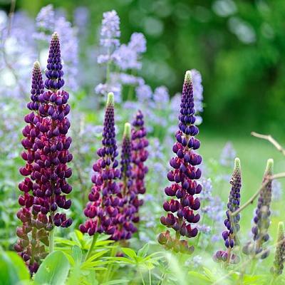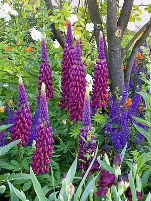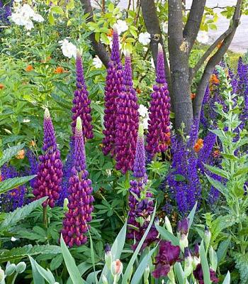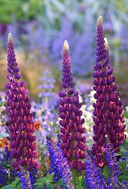 Люпин West Country Masterpiece (Вест Кантри Мастерпис). Наверное, это самый красивый в мире люпин. В переводе с английского "masterpiece" означает "шедевр". Биколор. Фиолетовый с кораллово-красной губой. Цветоносы очень высокие и прочные. После обрезки цветет повторно, до осени.