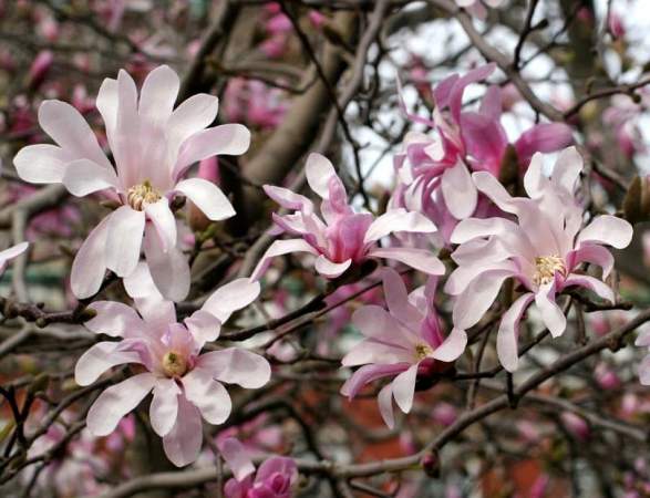 Магнолия звездчатая Rosea (Розеа). Невысокое деревце или кустарник с широкой кроной. Цветет в середине апреля до распускания листьев. Цветки очень красивые, розовые, с большим количеством узких лепестков, диаметром 8 см. Нарастает медленно.