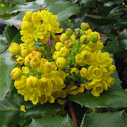 Магония падуболистная (M. aquifolium), или орегонский виноград — нетребовательный и холодостойкий вид, достигающий 150 см в высоту и 150 см в ширину. Растение происходит из Северной Америки; было интродуцировано в Европе в 1823 году и с тех пор распространилось фактически повсеместно.