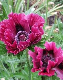 Мак Harlem (Гарлем). Роскошный, очень яркий, фантастического лилового цвета с чернильными пятнами у основания лепестков. Высота куста около 60 см.