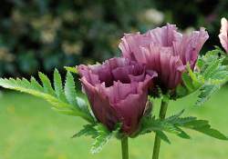 Мак Patty's Plum (Пэттис Плам). Цветок крупный, с атласными гофрированными лепестками, в основании каждого лепестка чернильное пятно. Цвет пепельно-фиолетовый с лиловым оттенком.