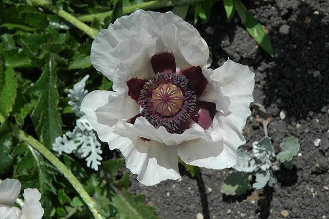 Мак восточный Royal Wedding (Роял Веддинг). Высота куста 80-100 см. Прямостоячие стебли увенчаны чашеобразными широко раскрытыми крупными цветками до 18-20 см в диаметре. Цветки бумажно-белые, слегка гофрированные. Цветет в середине мая — середине июня, на протяжении 30 дней.