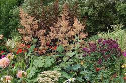 Маклея мелкоплодная Kelway's Coral Plume (Келвейз Корал Плам). Многолетнее корневищное растение до 200 см высотой. Листья изрезанные, сероватые или с бронзовым отливом. Цветки мелкие, желтовато-коричневые с розоватым оттенком, собраны в крупные, рыхлые, метельчатые соцветия. В культуре с 1896 года.