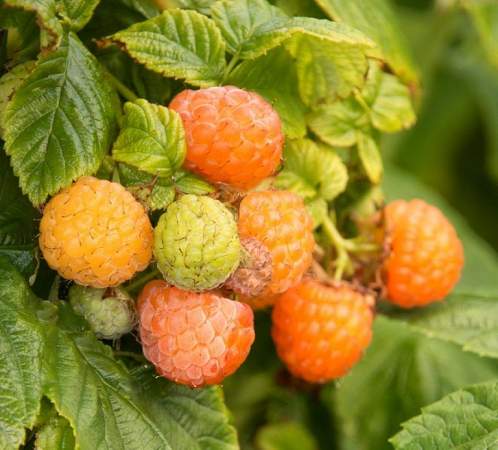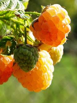 Малина All Gold (Олл Голд). Высокопродуктивный ремонтантный желтоплодный сорт малины. Получен в Нью-Гемпшир, США в 1967 г. Срок созревания плодов средний. Ягоды очень крупные, тупоконические, желтые с янтарной блестящей поверхностью, десертного типа, сочные и очень сладкие с отличным вкусом лесной малины.