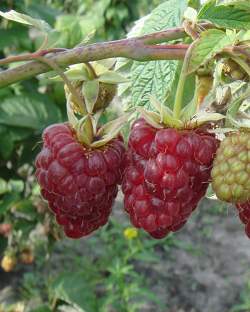 Малина плодоносит темно-красными ягодами, блестящими, бархатистыми и крупными, однородными. Плоды отличаются кисло-сладким вкусом и легким малиновым ароматом, сочные, имеют незначительное количество мелких семян. Иногда встречаются сдвоенные плоды. Ягоды не осыпаются даже при полном созревании, что отличает их от сорта "Краса России", но легко снимаются с плодоножки.