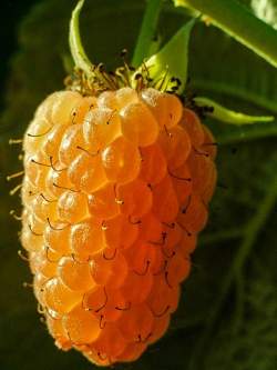 Малина Оранжевое чудо. Ремонтантный, крупноплодный, урожайный сорт, продуктивность и вкусовые качества плодов которого во многом зависят от погоды и местности выращивания. За счет желтой окраски плодов считается гипоаллергенным. Куст массивный, в меру раскидистый, растет букетом. Побеги покрыты шипами по всей длине, вырастают до 180 см., под тяжестью урожая гнутся книзу, раскачиваясь на ветру могут повреждать соседние ветки и многочисленные ягодные кисти.