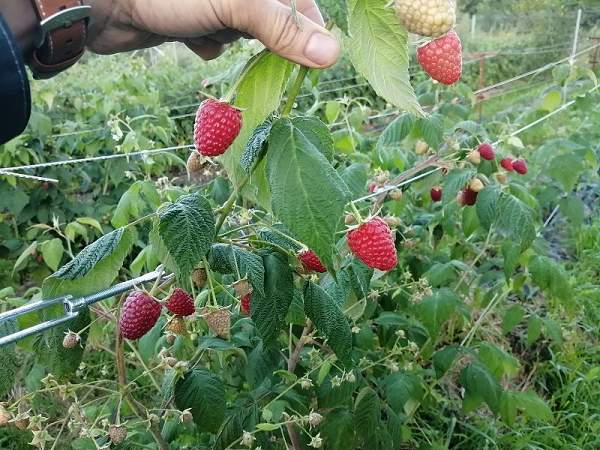 Малина Подарок Кашину. Превосходный новый сорт, находка для садоводов с участками в северном направлении. Очень быстро вступает в плодоношение. Ягода очень крупная, массой до 9 г, плотная, сочная и сладкая. Даже первое плодоношение впечатляет. Сорт ремонтантный, средне-раннего срока. Урожай очень большой. Побеги прямые, в кусте до 10 шт. Шипов мало.