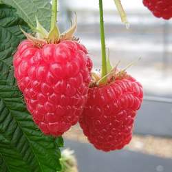 Малина Версаль. Новый сорт. На кусте нет шипов. Была выведена в Италии в 2000 году. Появилась в результате скрещивания двух сортов: Полка и Туламин. Побеги прямые, высотой 160 см.