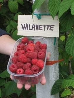Малина Вилламета. Сорт считается эталоном вкуса. Куст достаточно высокий, 200-220 см, дает небольшое количество побегов. Сами побеги крепкие, сильные, слабошиповатые. Листья среднего размера, зеленые. Ягоды крупные, массой 4-7 г, конической формы, красивые, блестящие, темно-розового цвета, вкус нежный, кисло-сладкий, аромат настоящей малины.
