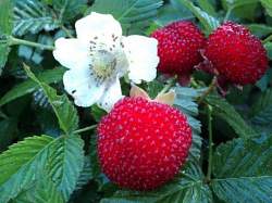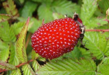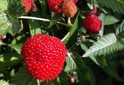 Малина земляничная (тибетская малина). Кусты тибетской малины имеют сферическую форму высотой от 30 до 70 см, очень густые и сильно колючие. Тонкие и гибкие побеги сплошь покрыты шипами, что вынуждает обращаться с растением очень деликатно. Гофрированные листья светло-зеленого цвета имеют зубчатый, с глубоким узором, край.