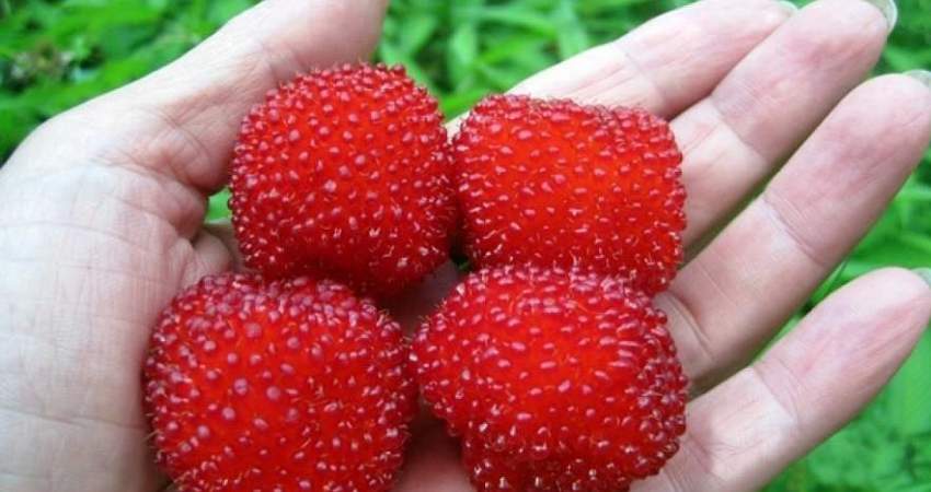 Ягоды очень крупные, до 5 см в диаметре, с полой серединкой, от розово-желтого до кораллово-красного цвета, без сахаристости и аромата. В недоспелом виде совершенно пресные. По мере созревания легко снимаются с цветоложа. Вкус их простой, кисло-сладкий, без ярких гастрономических нот, что с лихвой искупается необычной и даже изысканной внешностью.