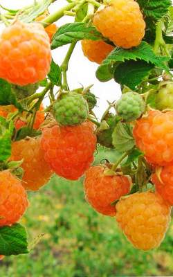 Малина Золотые Купола. Ремонтантная малина, самоплодная. Универсального назначения. Данный сорт занесён в Госреестр по Центральному региону. Солнцелюбивое, влаголюбивое растение. Светло-коричневый цвет отличает двухлетние побеги, светло-зелёные побеги – однолетние. Побеги со средней шиповатостью, прямые. Средний вес плодов составляет 3,8 г, форма полушаровидная, плодоножка короткая. Сладко-кислые ягоды с нежной мякотью.
