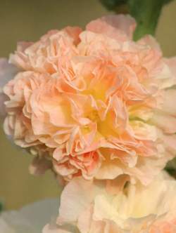 Мальва Ореховый Спас. Цветет с конца июня по сентябрь. Цветки махровые, словно замшевые, необычной персиково-бежевой окраски, 8-12 см в диаметре, собраны в крупное эффектное соцветие. Светолюбива и засухоустойчива, к почвам нетребовательна, но предпочитает участки с хорошо обработанной плодородной почвой.