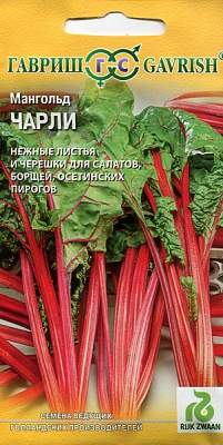 Мангольд Чарли F1. Ранний сорт мангольда. Красивые, слегка гофрированные зеленые листья с ярко-бордовыми черешками. Отлично растет как в открытом грунте, так и в парниках и теплицах. Используется для приготовления борща, пирогов и в салатах.