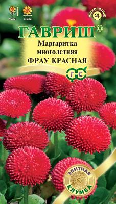 Маргаритка Фрау красная* 4 шт. гран. пробирка. Маргаритки группы сортов «Фрау» обладательницы крупных, плотных как помпоны махровых соцветий, диаметром 4-5 см. Кусты прочные пышные, одинакового размера, высотой 15 см, в пору цветения, обильно усыпаны красно-малиновыми соцветиями. Серия успешно используется в профессиональном и любительском садоводстве для выращивания на клумбах, рабатках, в бордюрах, а также в горшках и балконных ящиках.