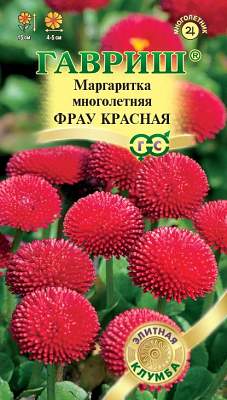 Маргаритка Фрау красная* 4 шт. гран. пробирка. Маргаритки группы сортов «Фрау» обладательницы крупных, плотных как помпоны махровых соцветий, диаметром 4-5 см. Кусты прочные пышные, одинакового размера, высотой 15 см, в пору цветения, обильно усыпаны красно-малиновыми соцветиями. Серия успешно используется в профессиональном и любительском садоводстве для выращивания на клумбах, рабатках, в бордюрах, а также в горшках и балконных ящиках.