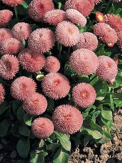 Маргаритка Pink (Пинк) - миниатюрные маргаритки изумительной красоты высотой до 12 см. Компактное растение с коротким сильным стеблем. Многочисленные крупные розовые соцветия с плотными трубчатыми лепестками, диаметром до 4 см. Универсальное использование: как почвопокровное растение, для обрамления клумб, балконных ящиков, альпинариев.