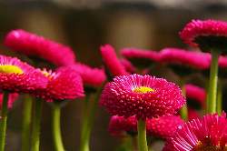 Маргаритка Rominette Rot (Роминетте Рот) — компактное растение с коротким сильным стеблем до 12 см. Многочисленные крупные красные соцветия с плотными трубчатыми лепестками, диаметром до 4 см.
