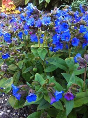 Медуница Opal (Опал). Редкая по красоте медуница — таинственная, загадочная. Листья длинные, овальные, серо-зеленые с белым узором из пятен и штрихов. Рисунок на листьях удачный, гармоничный. Цветки опалово-голубые, розоватые, сиреневатые. Цветение обильное, даже в тени. Разрастается быстро, создает изысканные куртины. Хороша с папоротниками, хостами, как подсадка к хвойным среднего размера. Везде уместна.