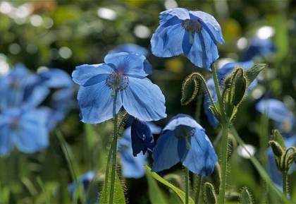 Меконопсис буквицелистный (Meconopsis betonicifolia). В высоту облиственные цветоносы достигают 90 см и на каждом до 10 бутонов. Первые цветки раскрываются в середине июня. Их диаметр равняется 4-11 см, количество лепестков от 4 до 8. Их небесно-голубая окраска резко контрастирует с ярко-желтыми тычинками.
