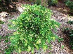 Очень декоративный раскидистый кустарник для тенистых мест, к 10-ти годам высота 50 см, ширина 150 см. Крона плоская, напоминает стелющиеся формы туи. Хвоя при растирании с лёгким запахом, зелёная с жёлтыми кончиками, осенью — с коричневыми кончиками. Используется для каменистых горок, для декорирования склонов, бордюров, окаймления газонов. Зона 3 (до -34ºС).