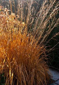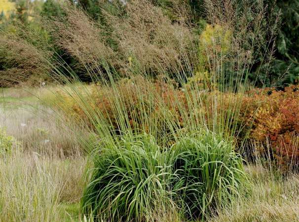 Молиния тростниковая Windspiel (Виндшпиль). Декоративный изящный злак, грациозно колышется при малейшем дуновении ветерка. Особенно эффектен, когда подсвечивается вечерним солнцем. Весной отрастает поздно. Медленно образует холмовидную кочку высотой 40-70 см. Листья зелёные, осенью желтеют. Цветоносы гибкие, тонкие, высотой 180-210 см. Цветки фиолетовые, в метельчатых соцветиях. Почва умеренно влажная.