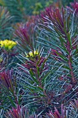 Молочай кипарисовый Fens Ruby (Фенс Руби). Необычный новый сорт молочая кипарисового. Весной весь кустик полностью красно-пурпурный, затем только молодые побеги остаются на верхушках красными. В период цветения очень красив, так как получается яркий контраст между желто-зелеными соцветиями и красной игольчатой листвой.