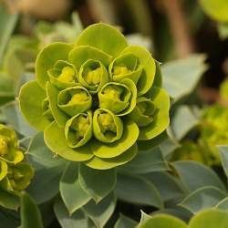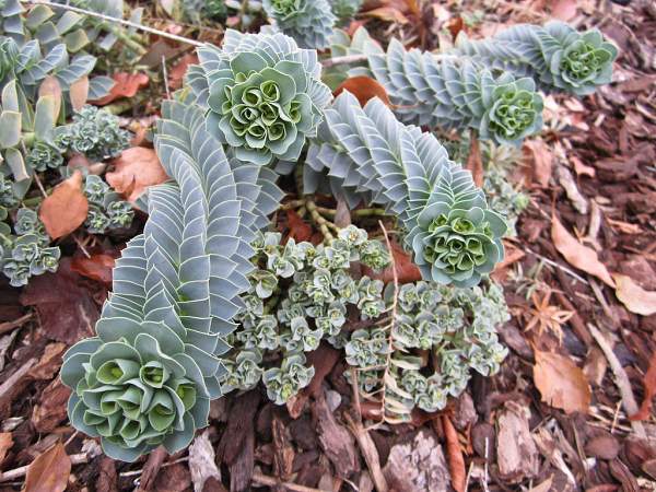 Молочай миртолистный. Изящный невысокий многолетник, который стоит завести любителям рокариев и альпийских горок. Ценится за интересную форму и геометрическое расположение голубовато-серых листьев.