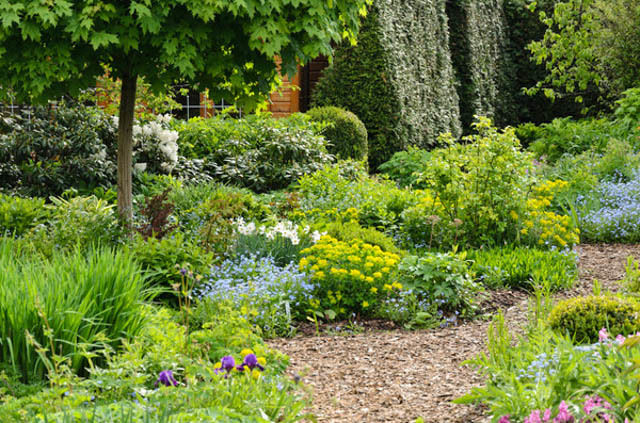 Молочай полихрома необычайно хорош рядом с флоксом растопыренным, бруннерой, многолетними фиалками.