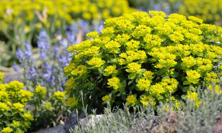 Молочай полихрома (многоцветный) цветет рано, поэтому его хорошо сочетать с мускари, шиловидным флоксом, гвоздиками.