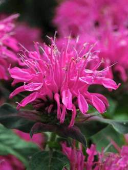 В высоту около 30 см, в ширину разрастается до 25 см. Цветки очень яркие, темно-розовые, прицветники красноватые. Цветет пышно. Листья темно-зеленые, очень ароматные, прекрасны для ароматизации черного чая.