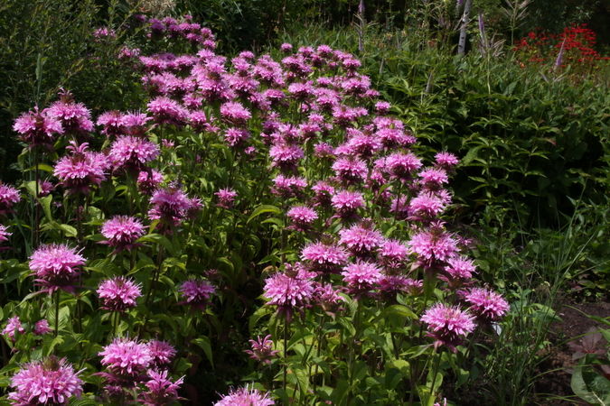Монарда Beauty of Cobham (Бьюти Ов Кобэм). Листья, стебли и цветки имеют приятный мятно-лимонный терпкий аромат. Воронковидные ярко-розовые цветки собраны в головчатые соцветия на концах длинных крепких цветоносов. Монарда хорошо растет на солнце, но переносит и полутень. Нетребовательна к почвам, однако лучше растет на легких известковых. Тяжелые болотистые и кислые почвы для монард непригодны.
