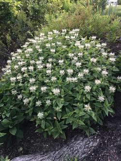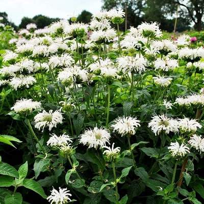 Монарда Bee-Bright (Би Брайт). Цветки белые, собраны в "лохматые" сохцветия. Цветение обильное. Любима бабочками и пчелами. Высота 50 см.
