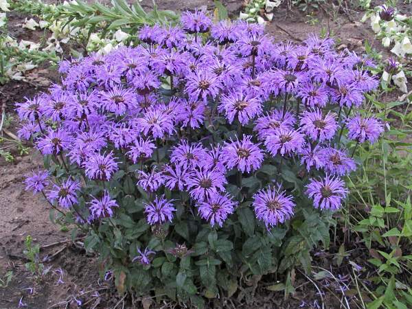 Монарда Bee-Pretty (Би Притти). Цветки пурпурно-фиолетовые, собранные в головчатые соцветия. Стебли четырехгранные, листья заостренные, темно-зеленые. Цветет обильно, с июня по август. Привлекает в сад бабочек и пчел. Кусты высотой до 80 см. Растет быстро. Морозостойкость полная. Повышенная устойчивость к мучнистой росе.