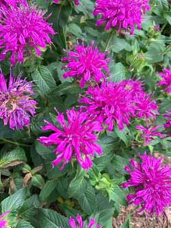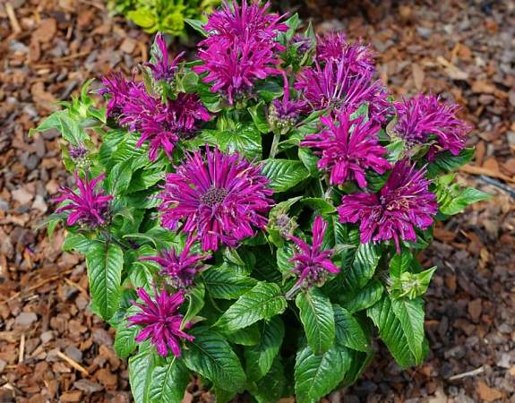 Монарда Purple Lace (Пёпл Лэйс). Куст компактный, невысокий, до 40 см. Цветки ярко-лиловые, почти пурпурные, со светло-фиолетовыми прицветниками, очень эффектные, ароматные. Листья тёмно-зелёные, пахнут мятой. Растение очень хорошо разветвлённое, высотой 30-40 см. Цветение с июля по сентябрь. Морозостойкость полная.