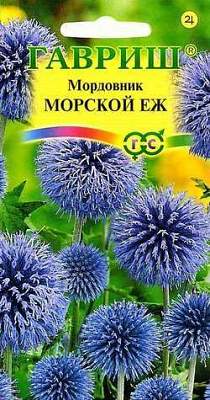 Мордовник Морской Ёж 0,3 г. Многолетнее прямостоячее растение семейства Астровые, высотой 70-100 см. Стебли простые или слабоветвистые, покрыты белым паутинистым опушением. Листья дважды перистораздельные, снизу беловойлочные. Соцветия до 5 см в диаметре, головчатые, состоят из голубых цветков Листочки обертки без железистых волосков. Цветет в июне-июле 35-40 дней.