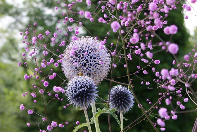 Мордовник, форма и цвет которого исключительно выразительны, сочетается в саду со всеми растениями, имеющими соцветия-"ромашки", щитки, перья, колосья. Он объединяет композицию, если повторить его в цветнике на некотором расстоянии. Это растение знаковое, своего рода маячок — задает тон, придает законченность, насыщает содержанием.