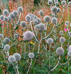 Стебли прямостоячие, ветвистые, густо покрыты буроватыми, железистыми волосками. Листья перисто-лопастные или перисто-раздельные, снизу серовойлочные. Соцветия шаровидные 4-5 см в диаметре, цветки мелкие, бледно-голубые, каждый окружен оберткой из колючих прицветников. Цветет в июле — августе. Плодоносит. В культуре с 1542 года. Неприхотлив, хорошо растет на любых окультуренных почвах, но предпочитают сухую, свежую, проницаемую, содержащую известь. Не переносит влажных, тяжелых почв, начинает гнить и теряет прочность!