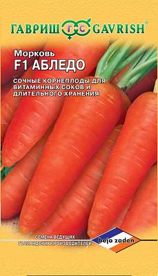 Морковь Абледо F1 150 шт. Н14. Позднеспелый (120-140 дней от всходов до технической спелости) гибрид. Розетка листьев раскидистая. Корнеплод конический с заостренным кончиком, короткий до среднего, массой 100-200 г. Кора и сердцевина темно-оранжевые, обладают отличным вкусом. Используют в свежем виде, для производства соков и зимнего хранения.