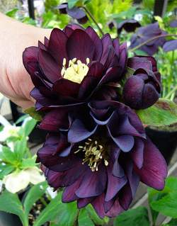Морозник Double Ellen Purple (Дабл Эллен Пёпл). Прекрасные крупные цветки, темно-пурпурные с яркими желтыми тычинками. Держатся на растении очень-очень долго.