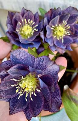 Морозник Magic Double Slaty Blue (Мэджик Дабл Слейти Блу). Смесь растений с махровыми цветками в синевато-серых тонах. Цветки с восковым налётом, придающим цветкам туманный оттенок сланца поверх синевато-серого базового цвета. Листва тёмно-зелёная. Место полутенистое или тенистое. Почва богатая, влажная, дренированная, не кислая.