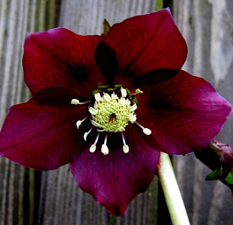 Морозник восточный Red Hybrid (Ред Хайбрид). Цветоносы прочные, стройные, около 40 см в высоту, винно-красные. Листья темно-зеленые, красивые, зимуют под снегом. Цветки крупные, до 12 см в диаметре, одиночные или по 3 штуки на побеге, красно-бордовые, тычинки пушистые желтые.