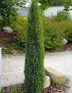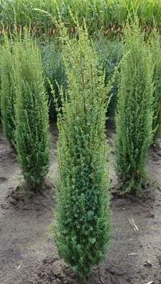 Можжевельник обыкновенный Arnold (Арнольд). Очень плотный узко-колонновидный вид можжевельника. В 10 лет достигает около 1,5 м в высоту. Побеги растут вертикально, плотно прилегая друг к другу. Иглы короткие, колючие. Хвоя серо-голубовато-зеленая.